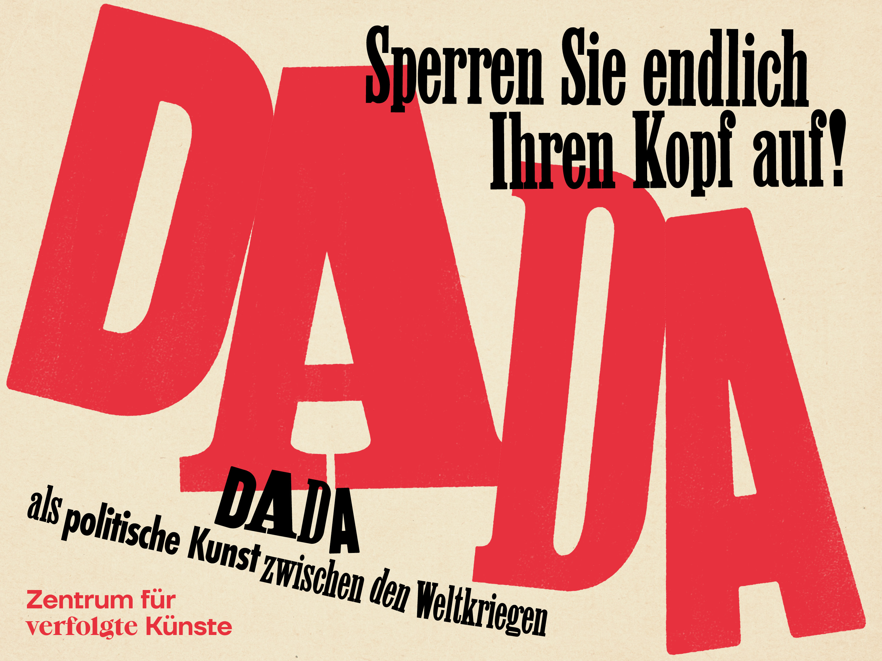Herzliche Einladung zur Eröffnung der Ausstellung „,Sperren Sie endlich Ihren Kopf auf!' Dada als politische Kunst zwischen den Weltkriegen“ am Samstag, 9. Mai 2026 um 18 Uhr.